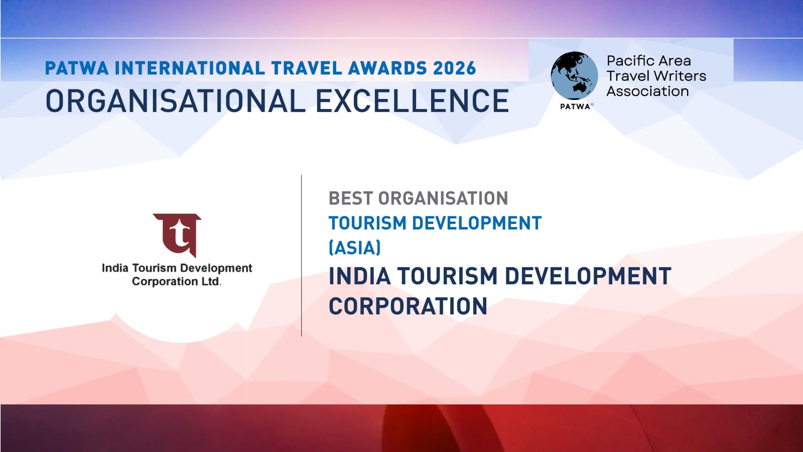 ITDC conferred with award for ‘Best organisation in Tourism and Hospitality sector’ at 15th Annual International Hospitality & Travel Awards 2019 held on 15th November 2019